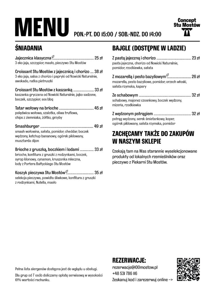 Menu śniadaniowe (pon.-pt. do 15:00 / sob.-nd. do 14:00)